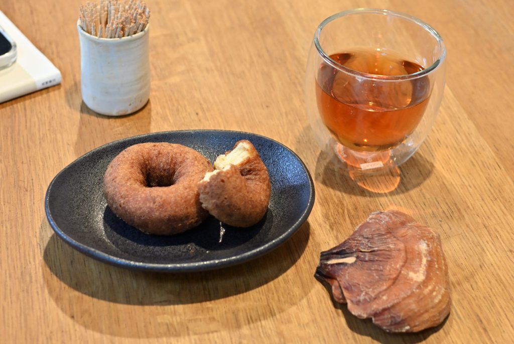 霊芝茶と直売所で買ったおからドーナツ