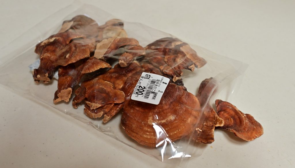 まずは試飲。口に入れた瞬間は干し椎茸の様な香ばしい香り。これだって乾燥きのこだもんなぁ、水溶性の食物繊維とビタミンDは沢山入っていそうだ。最後に来る後味は確かに苦い、お世辞にも美味しいお茶とは言えないが体にいいとなればありがたく感じる。効果の程はまだ何とも‥しばらく続けてみます。
